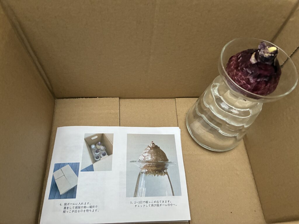 説明書には、球根を1、2ヶ月新聞紙に包んで寝かせてください。と書いてありました。