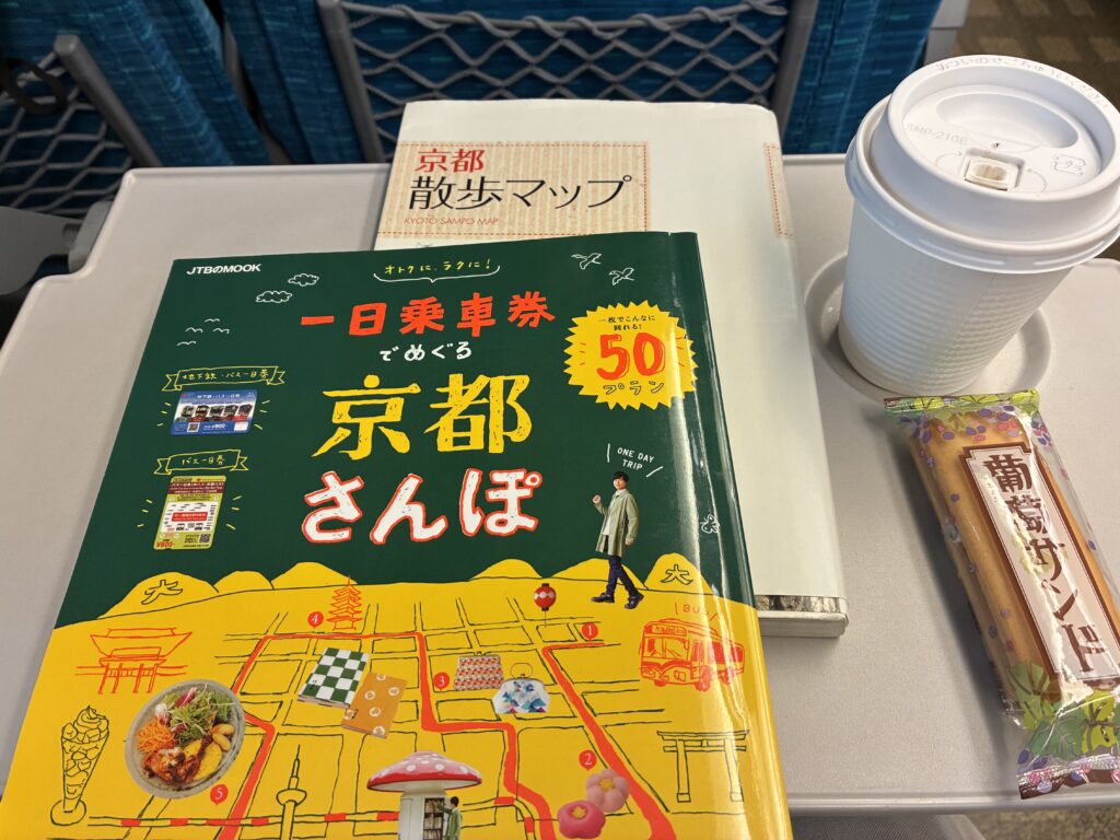 新幹線で京都へ向かい、車内でその日のスケジュールを相談。