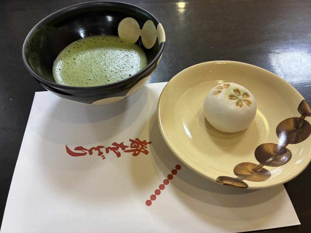 鑑賞前には庭園を散策し、立礼式でお抹茶もいただきました。