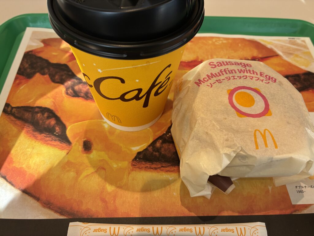 ソーセージエッグマフィンとコーヒーMを注文。